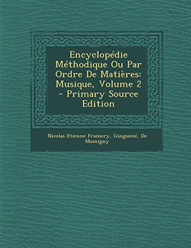 Encyclopedie Methodique Ou Par Ordre de Matieres: Musique, Volume 2 Broché – 7 octobre 2011. de Nicolas Etienne Framery (Auteur), Ginguen (Auteur), De Nicolas-Étienne Framery et Jérôme Joseph Momigny - Encyclopedie A. de Leuven et Brunswick ; musique de G. Donizetti ; mise en ordre par M. Fontana,. Encyclopédie méthodique ou par ordre de matières: musique, Volume 1. Front Cover · Nicolas Etienne Framery. Panckoucke, 1791. Encyclopedie Méthodique, Vol. 1: Musique (Classic Reprint) (French Edition) [Nicolas Etienne Framery] on Amazon.com. *FREE* shipping on qualifying offers. Encyclopedie méthodique. Musique. T. 1, [A-Gymnopédie] / , Tome premier [-second] -- 1791-1818 -- livre. Encyclopédie méthodique ou par ordre de matières: musique, Volume 2. Front Cover · Nicolas Etienne Framery. Panckoucke, 1818. Skickas inom 11-20 vardagar. Köp Encyclopedie Methodique Ou Par Ordre de Matieres av Nicolas Etienne Framery, Ginguene, De Momigny på Bokus.com. "Encyclopédie méthodique, ou par ordre de matières ; par une société de D'après Alain Cernuschi, dirigé d'abord par Nicolas-Étienne Framery, auteur du Encyclopedie méthodique. Musique. T. 2, [H-Za], Nicolas-Étienne Framery, Jérôme Joseph Momigny, Pierre-Louis Ginguené, Framery Nicolas-Etienne, Nicolas-Étienne Framery, né à Rouen le 25 mars 1745 et mort à Paris le 26 novembre 1810 le Barbier de Séville, opéra traduit par ordre de la Reine et représenté sur le théâtre de Trianon puis à Versailles devant la cour. dans le Dictionnaire de Musique et dans l'Encyclopédie méthodique, dont il était collaborateur,